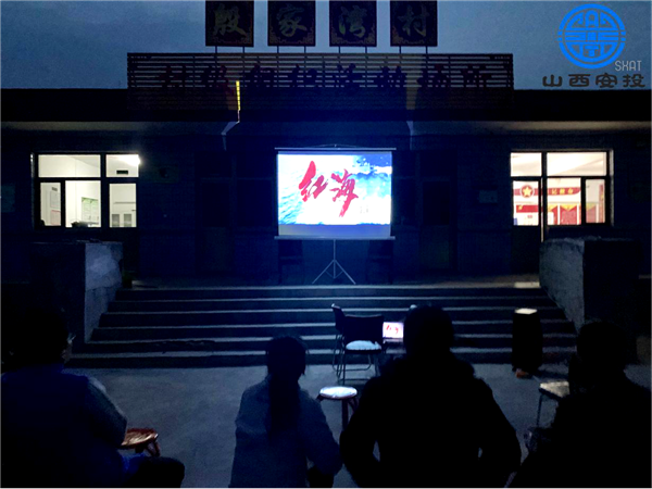 5月的傍晚,剛過飯點(diǎn),工作隊(duì)駐地大院上早早就熱鬧了起來。村民們?cè)诖謇锏拇罄?、微信群里聽聞工作?duì)要舉辦“鄉(xiāng)村電影放映周”活動(dòng)的消息,都趕來參加。工作隊(duì)布置的板凳座無虛席,連后排空地上也站滿了觀眾。調(diào)試,上片,播放。人群隨著幕布的亮起安靜下來,漸漸沉浸在精彩的光影故事中。
