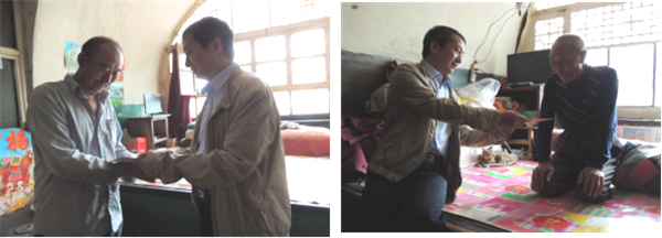 實(shí)地調(diào)研期間,梁曉軍董事長(zhǎng)一行還走訪慰問了村中60歲以上老黨員,詳細(xì)詢問了老黨員的身體、家庭、生活等情況,向他們送上了慰問金,轉(zhuǎn)達(dá)黨組織的關(guān)懷,并送上最誠摯的問候和祝福。老黨員對(duì)黨組織的關(guān)懷和牽掛表示由衷的感謝,并表示會(huì)繼續(xù)發(fā)揮老黨員模范帶頭作用,發(fā)揮余熱。
